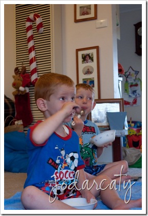 lately the boys have been on a yoghurt eating fest. they have gone through heaps and heaps of the stuff. dessert, dinner (if I let them) breakfast lunch - you name it they would eat it. Not that I mind! Anyway here are my chubbies being healthy little monkeys slurping up yet another bowl of their yummy white vanilla yoghurt!!